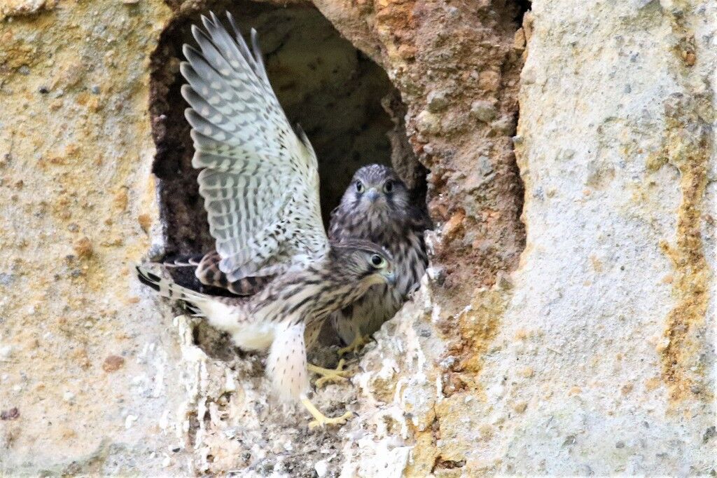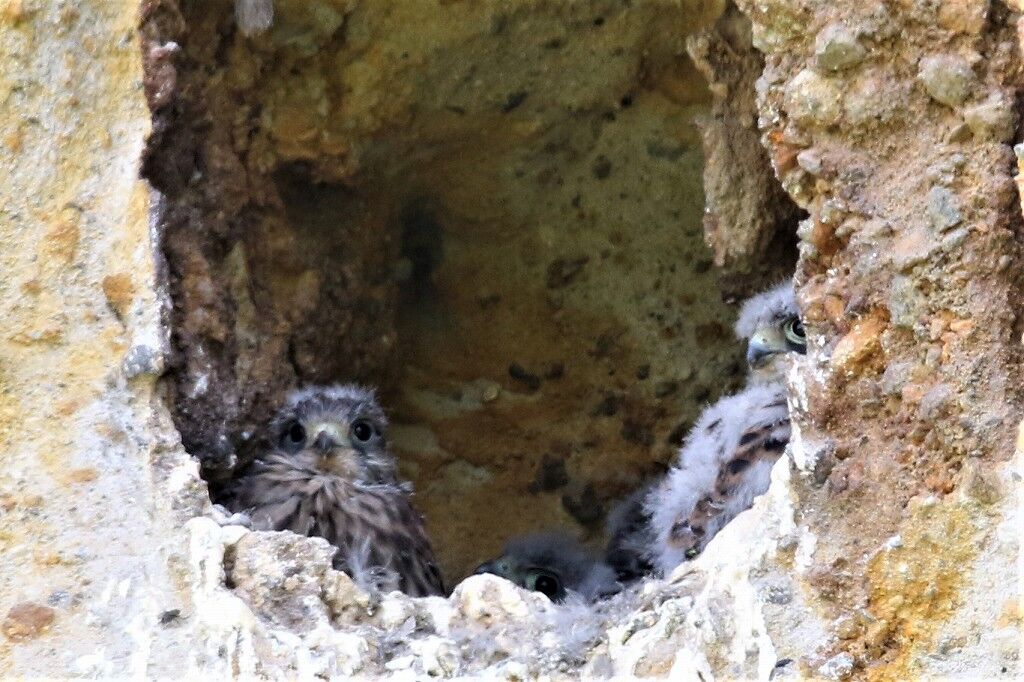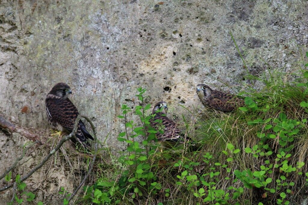 近くを探すと5mほど離れた崖の中段に3羽が集まっていました