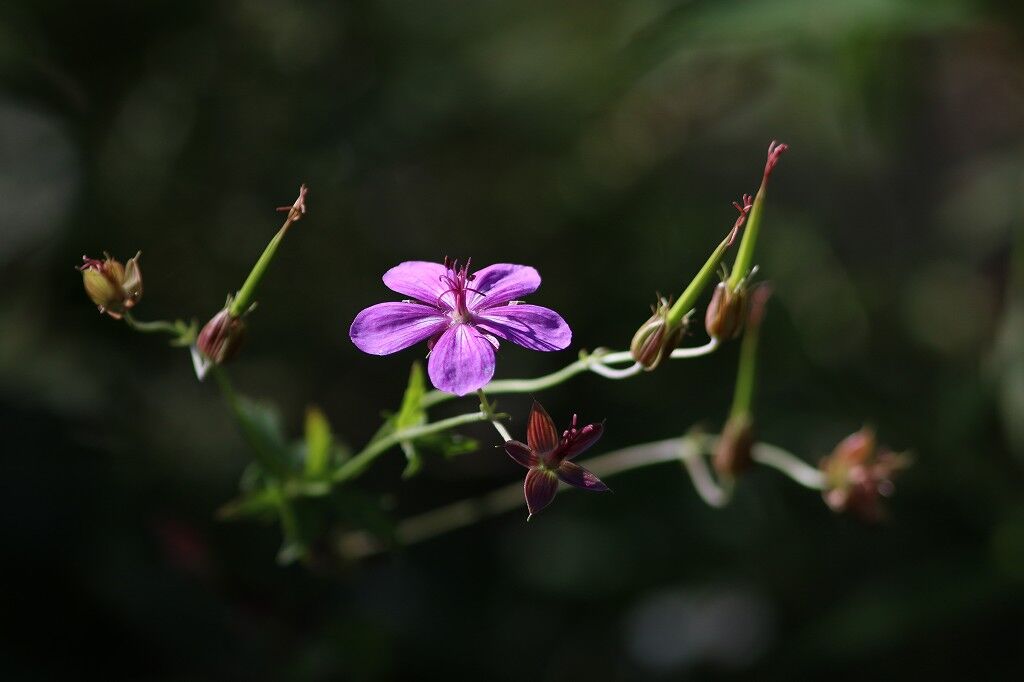 「アサマフウロ」はツリフネソウの影でひっそり咲いていた