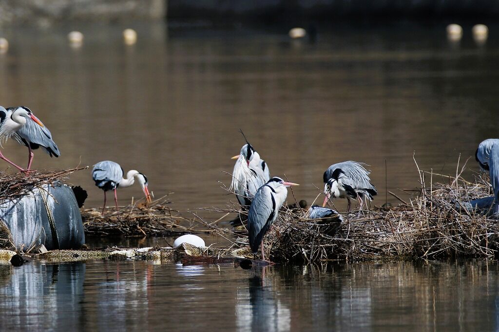 昨年は強風で何回も巣を吹き飛ばされたブイの上に