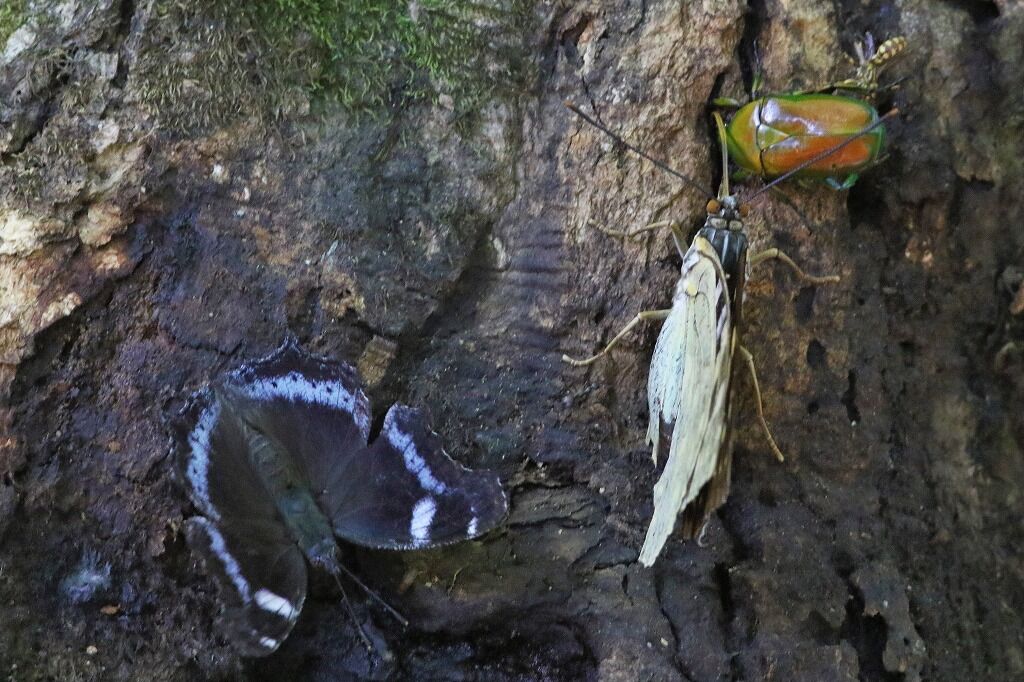 楢の木の樹液に集まる蝶と昆虫