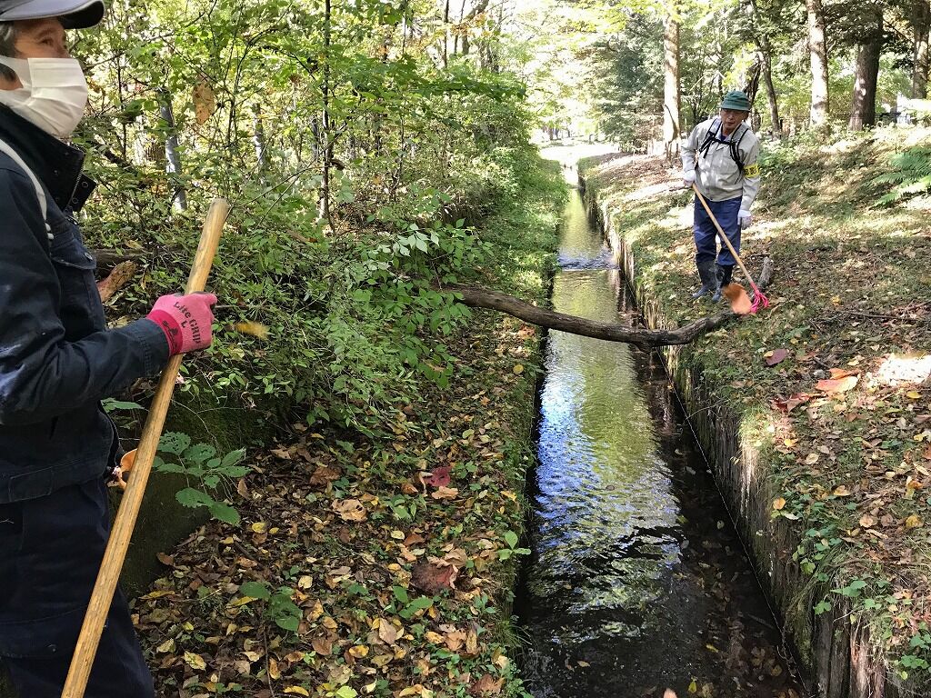 途中には風倒木や枯木が水路を横切ったり水路内に落ちていました