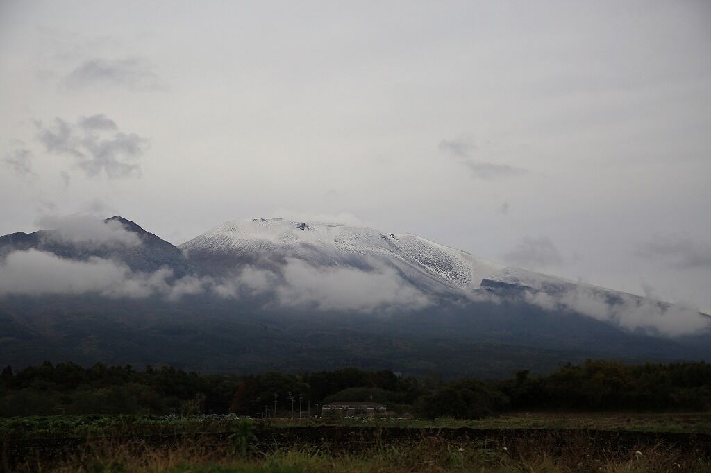 初冠雪した山頂部は麓からは雲に隠れて姿を見せませんでしたが