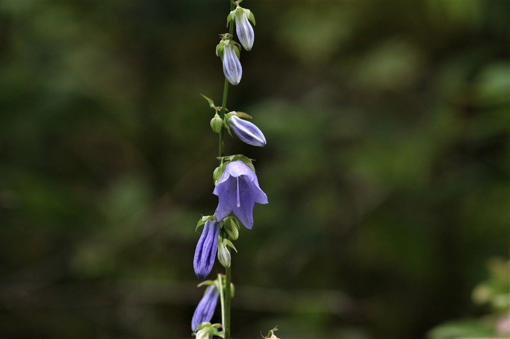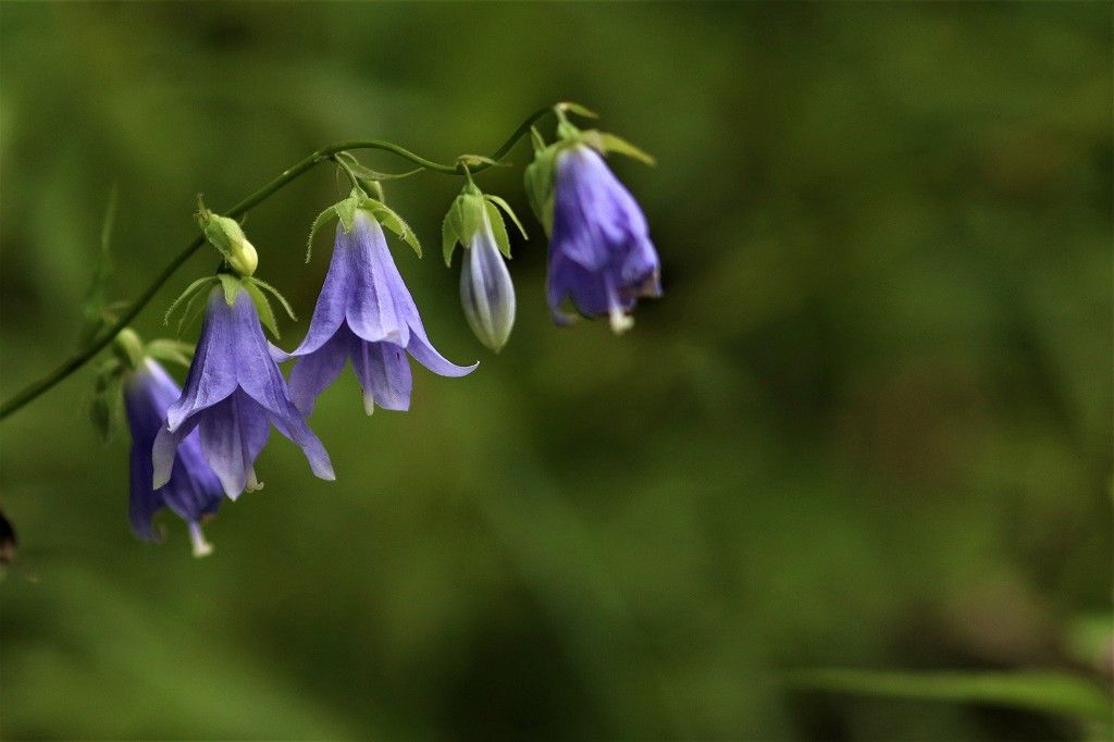 釣鐘状の青紫色の花を下向きに1輪から10輪くらいつける。