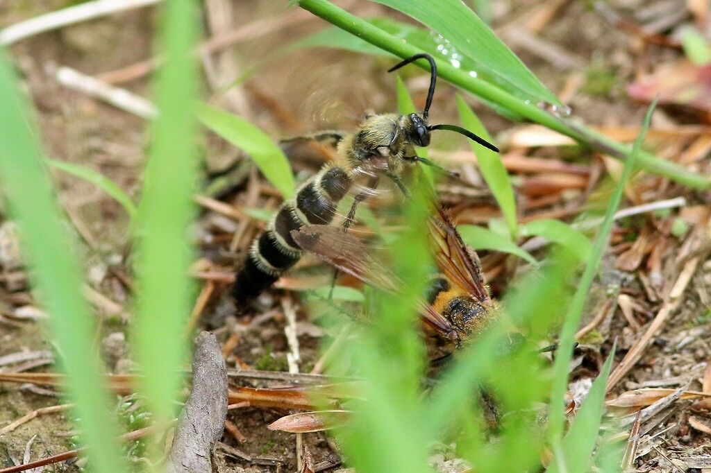 昨年、我が家の庭に発生した「キンケハラナガツチバチ」