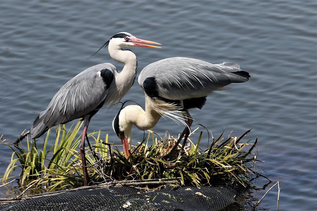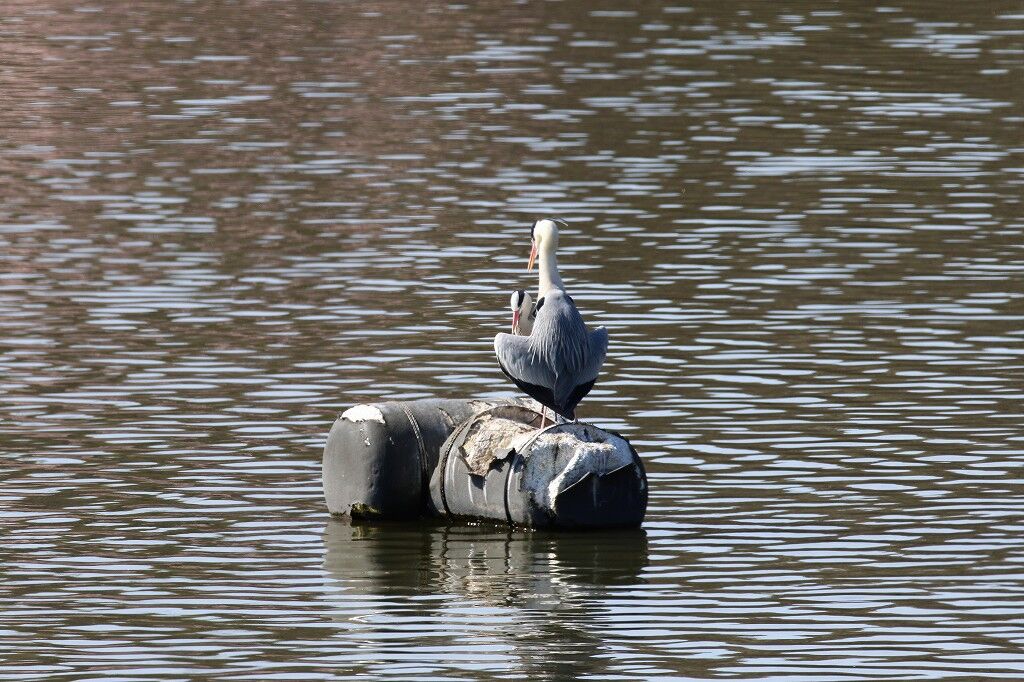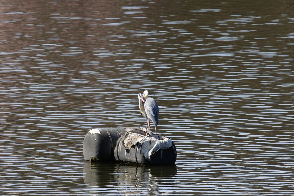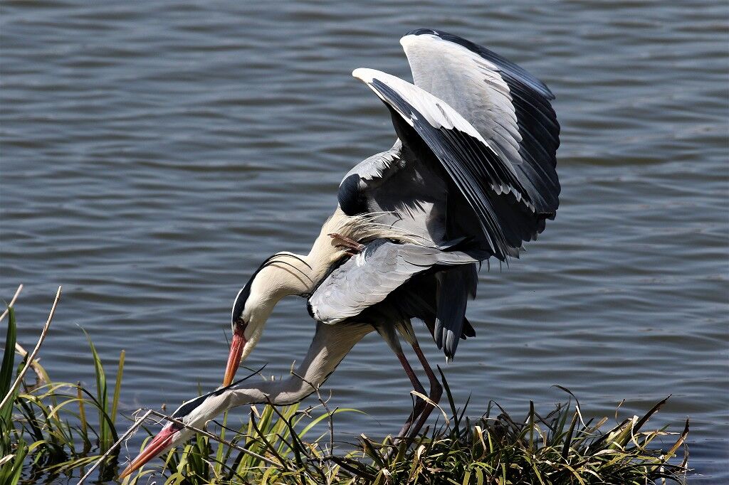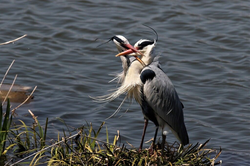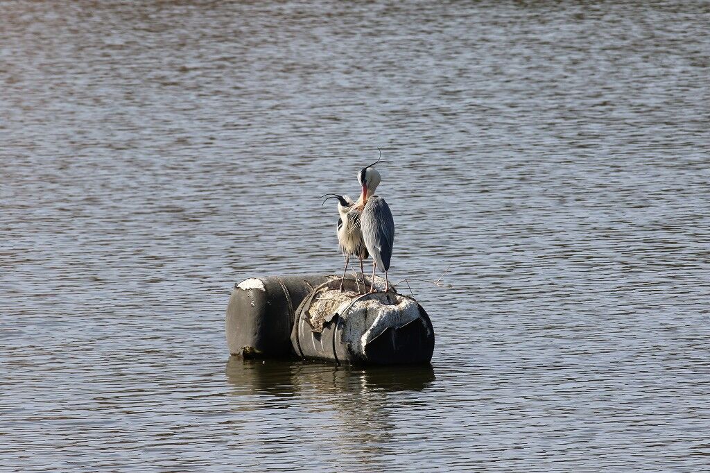 繁殖期(発情期)のアオサギの嘴はオレンジ色です。