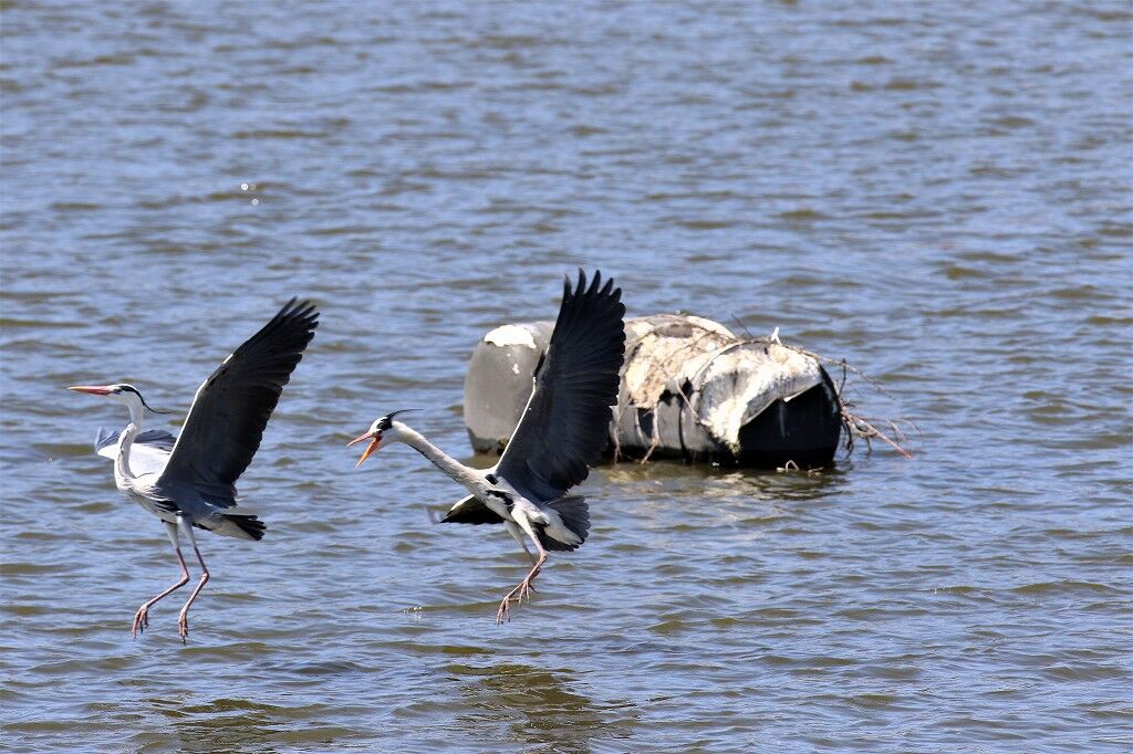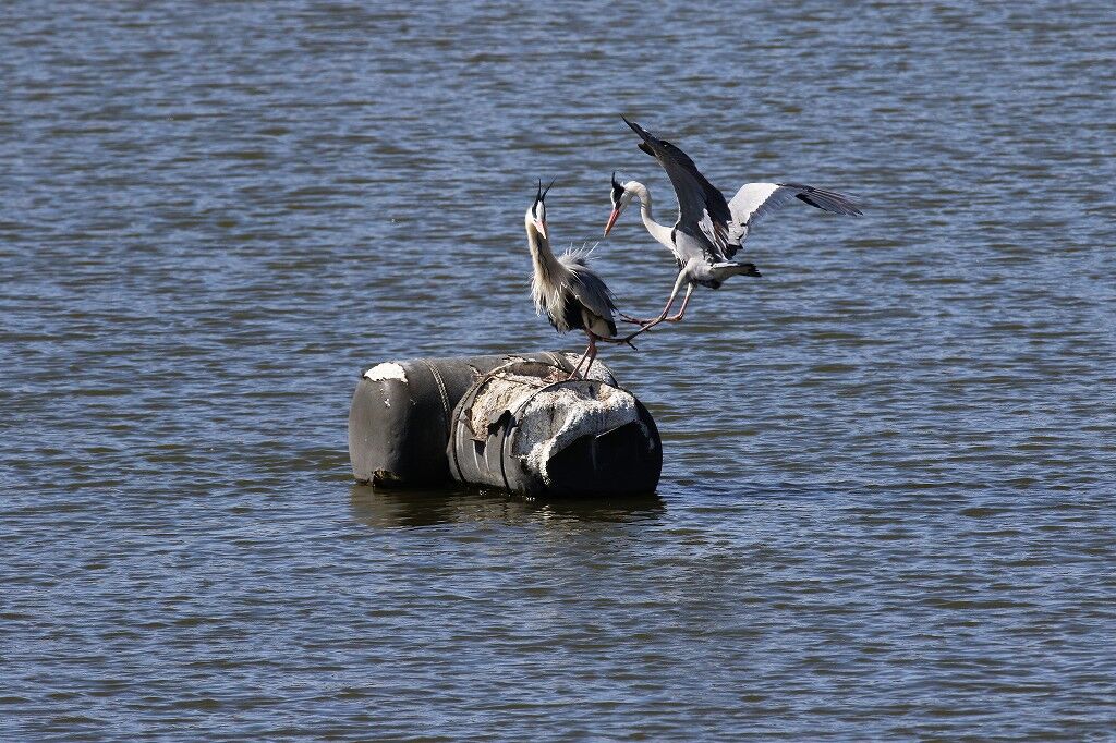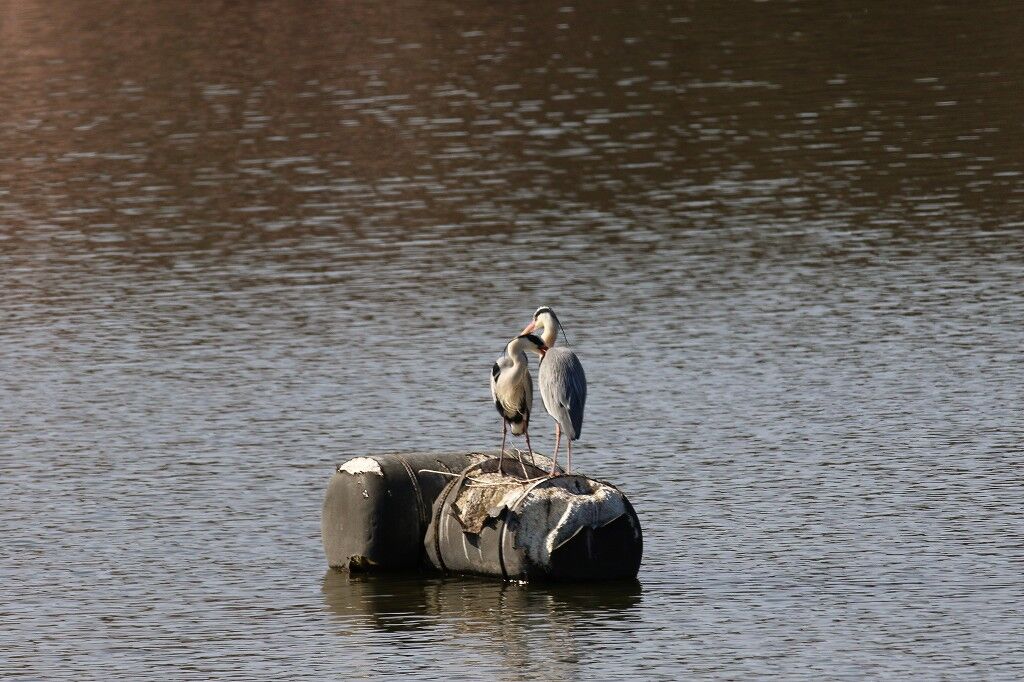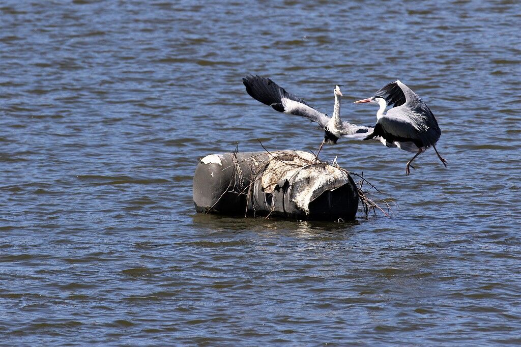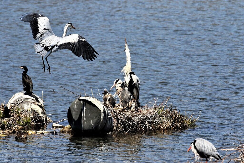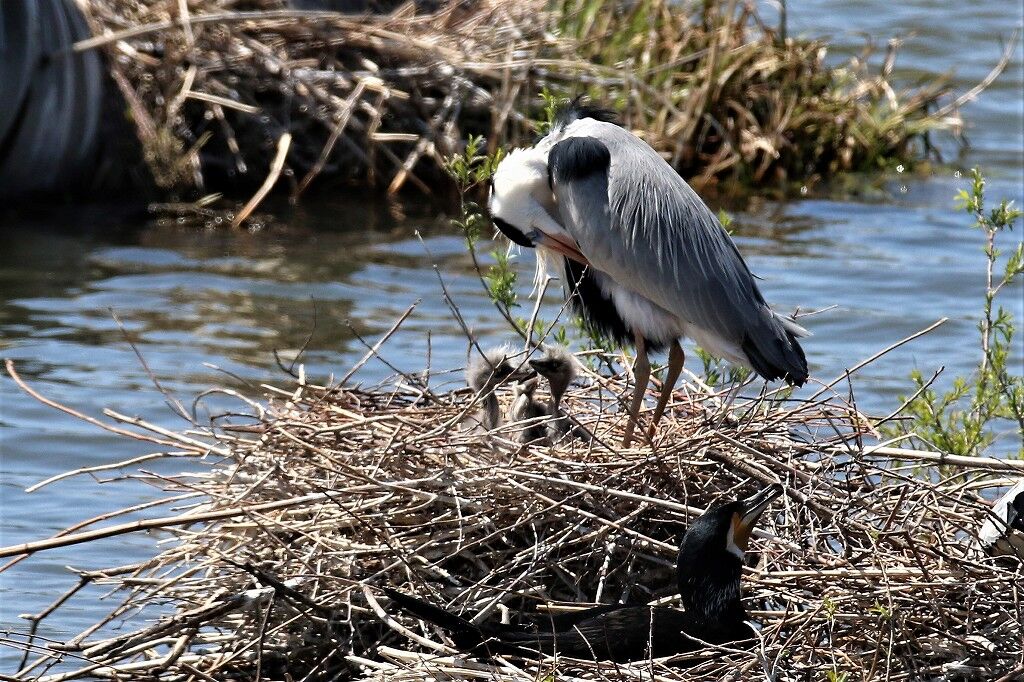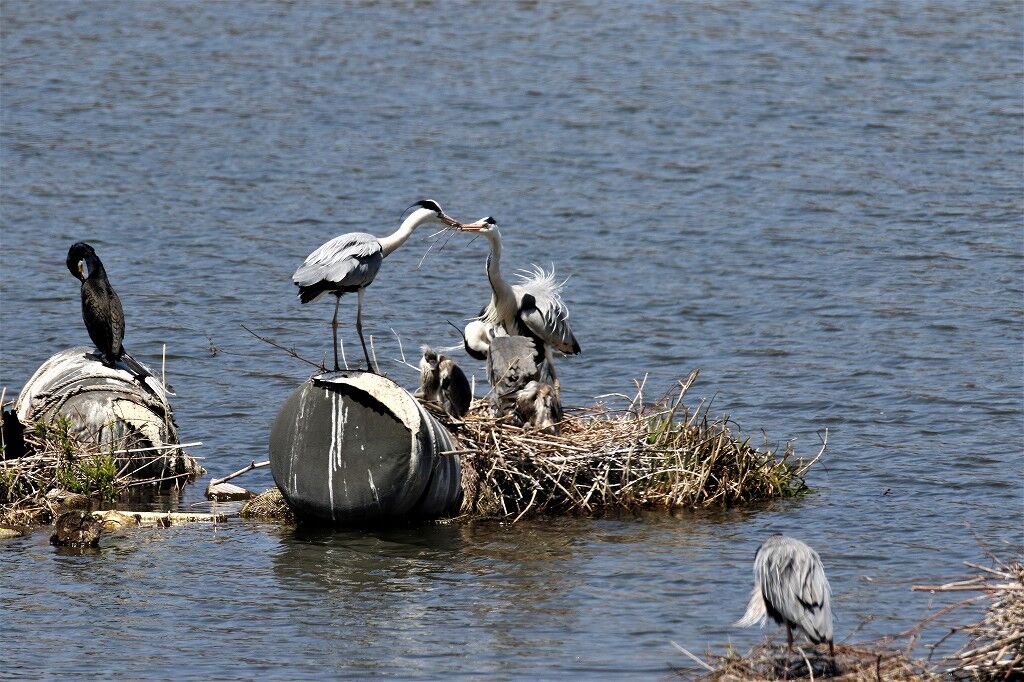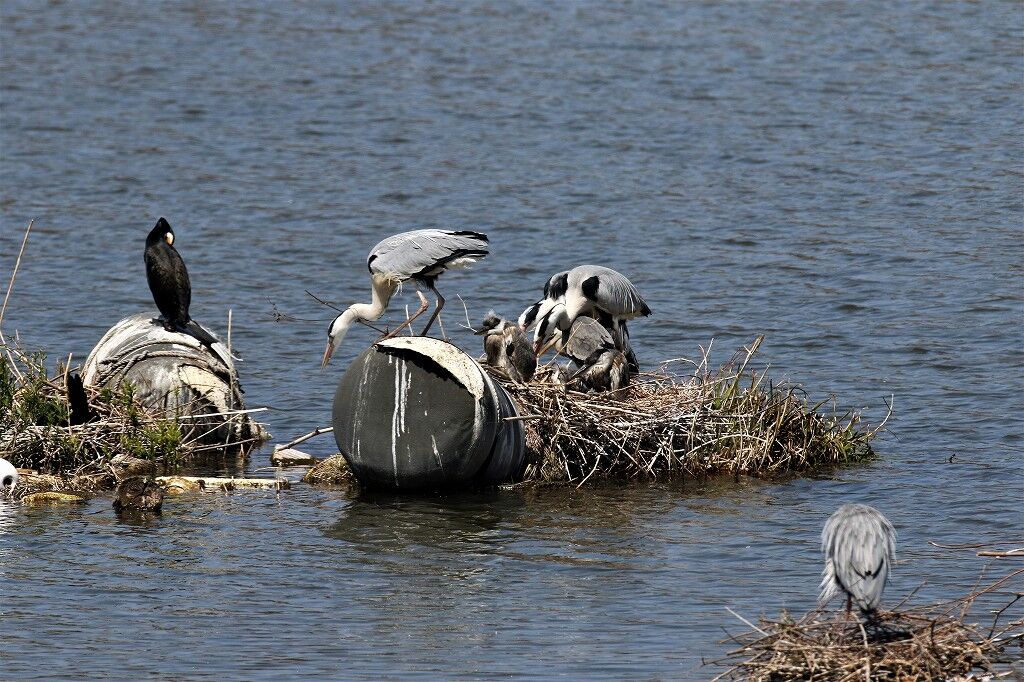 一番近くで抱卵しているアオサギの近くに新しいカップルがやってきました