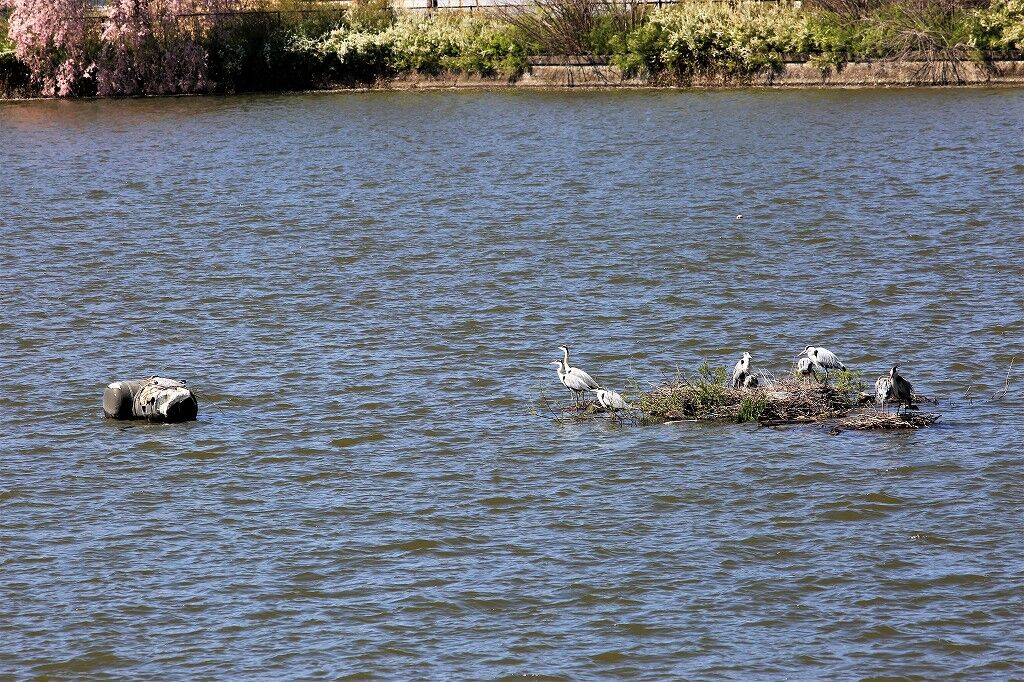 左側にシングルマザーの巣、右側に浮島