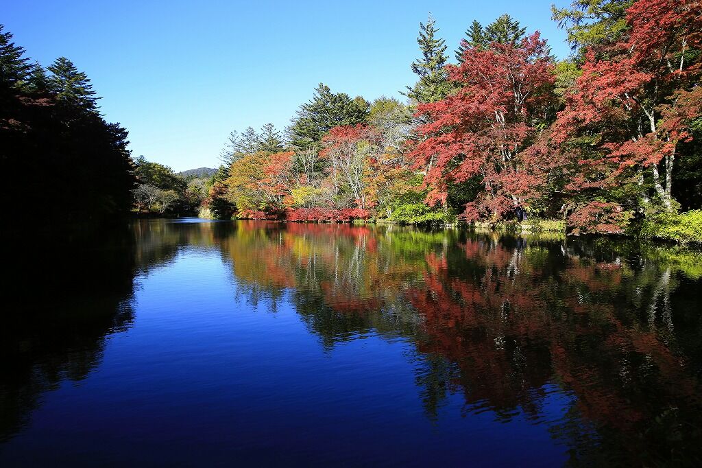 御影用水は千ヶ滝から流れる御影用水(上堰)と白糸の滝から流れる湯川用水(下堰)の