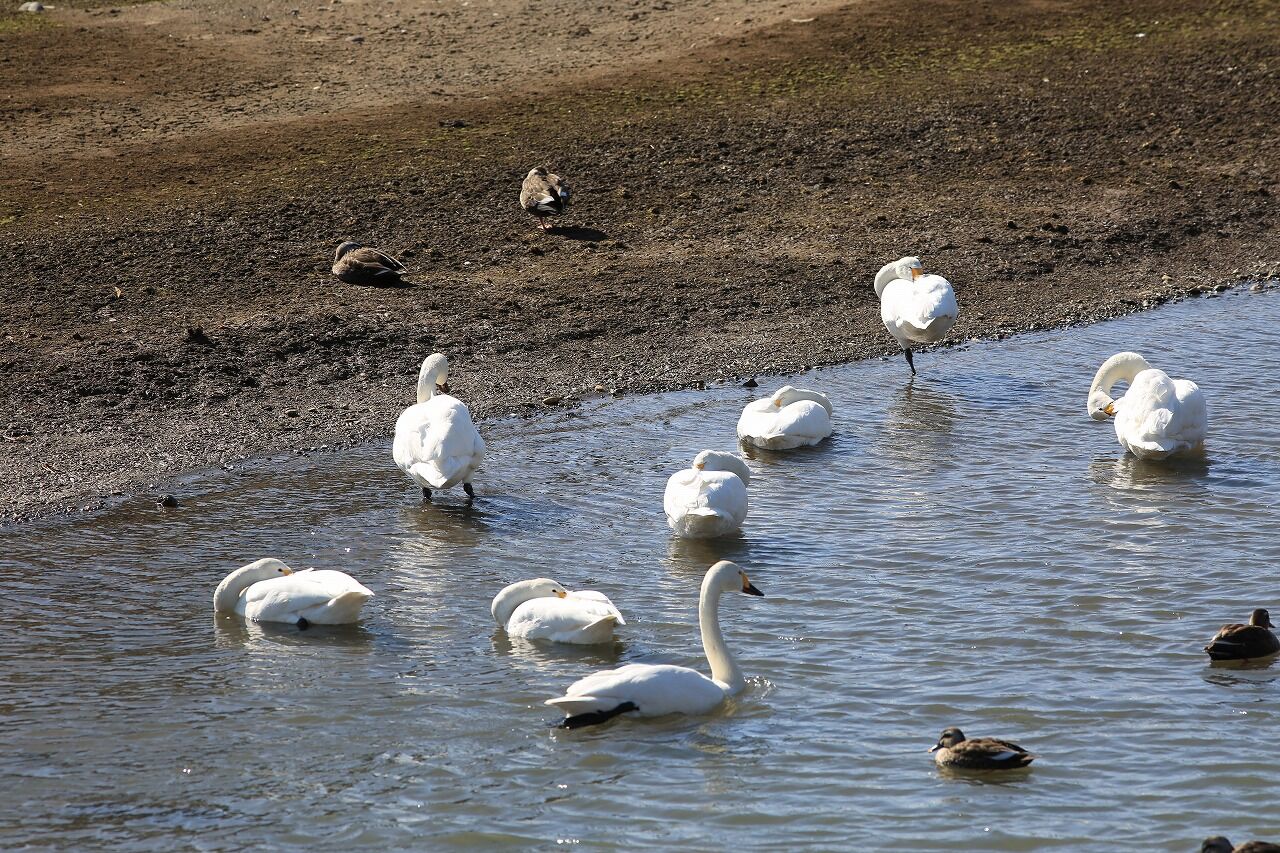 特徴的なコハクチョウは来年もここに戻ってくるかな?