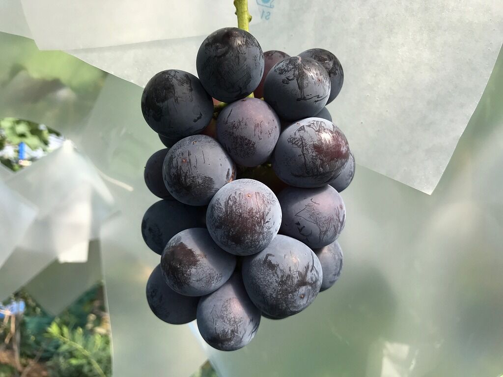 我が家のナガノパープルが色付いてきたので収穫時期を見極めるため