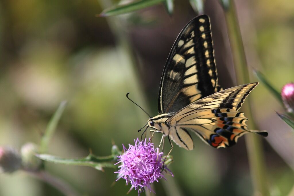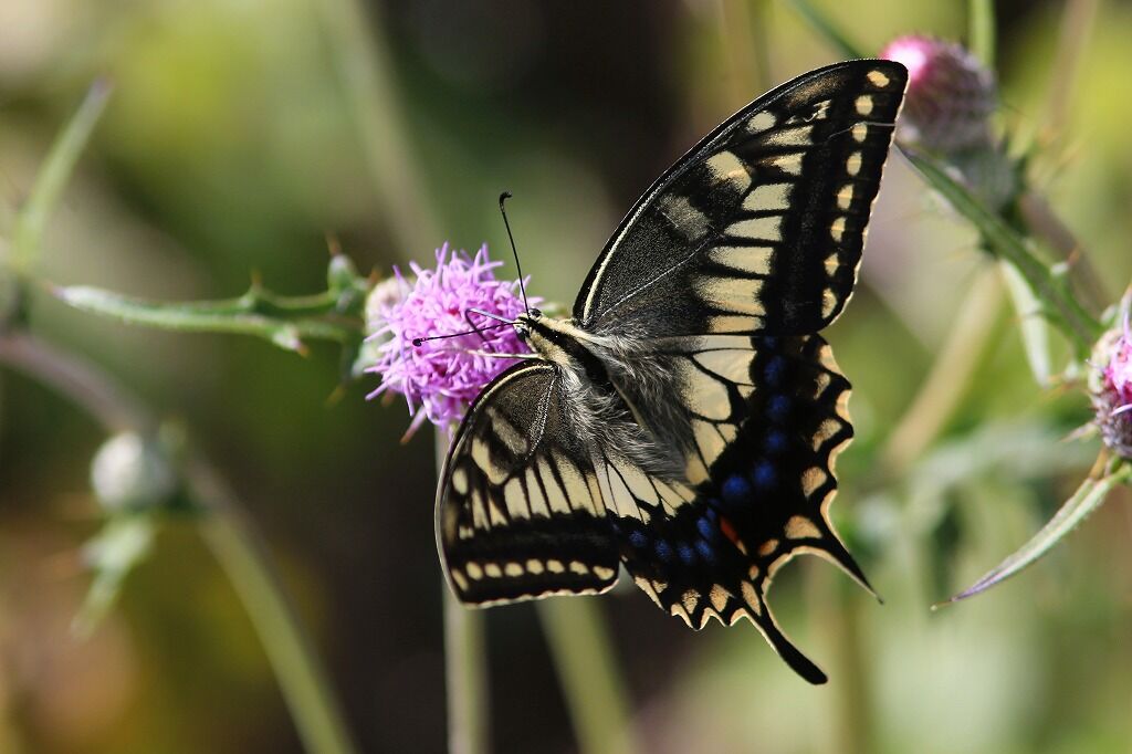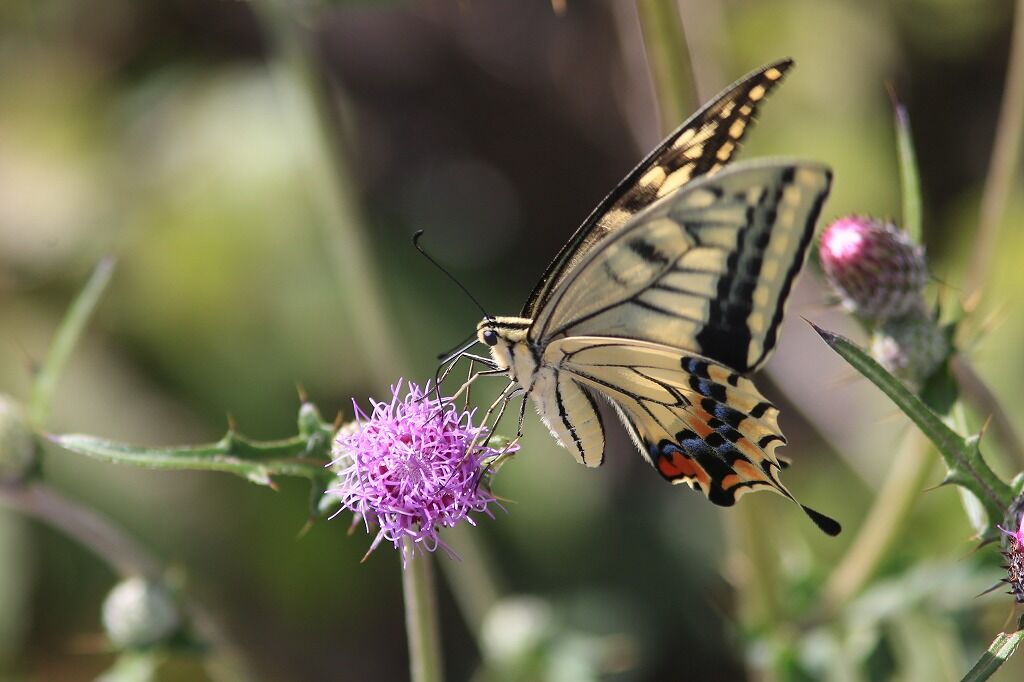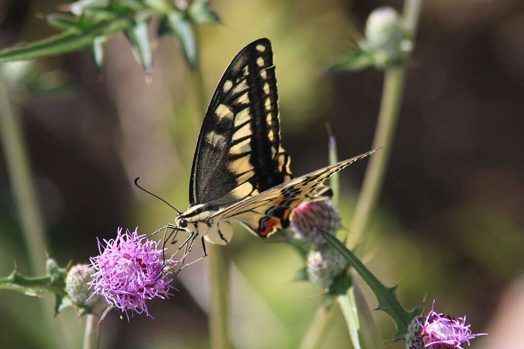 キアゲハがひらひら飛んできてノアザミに止まって吸蜜を始めた