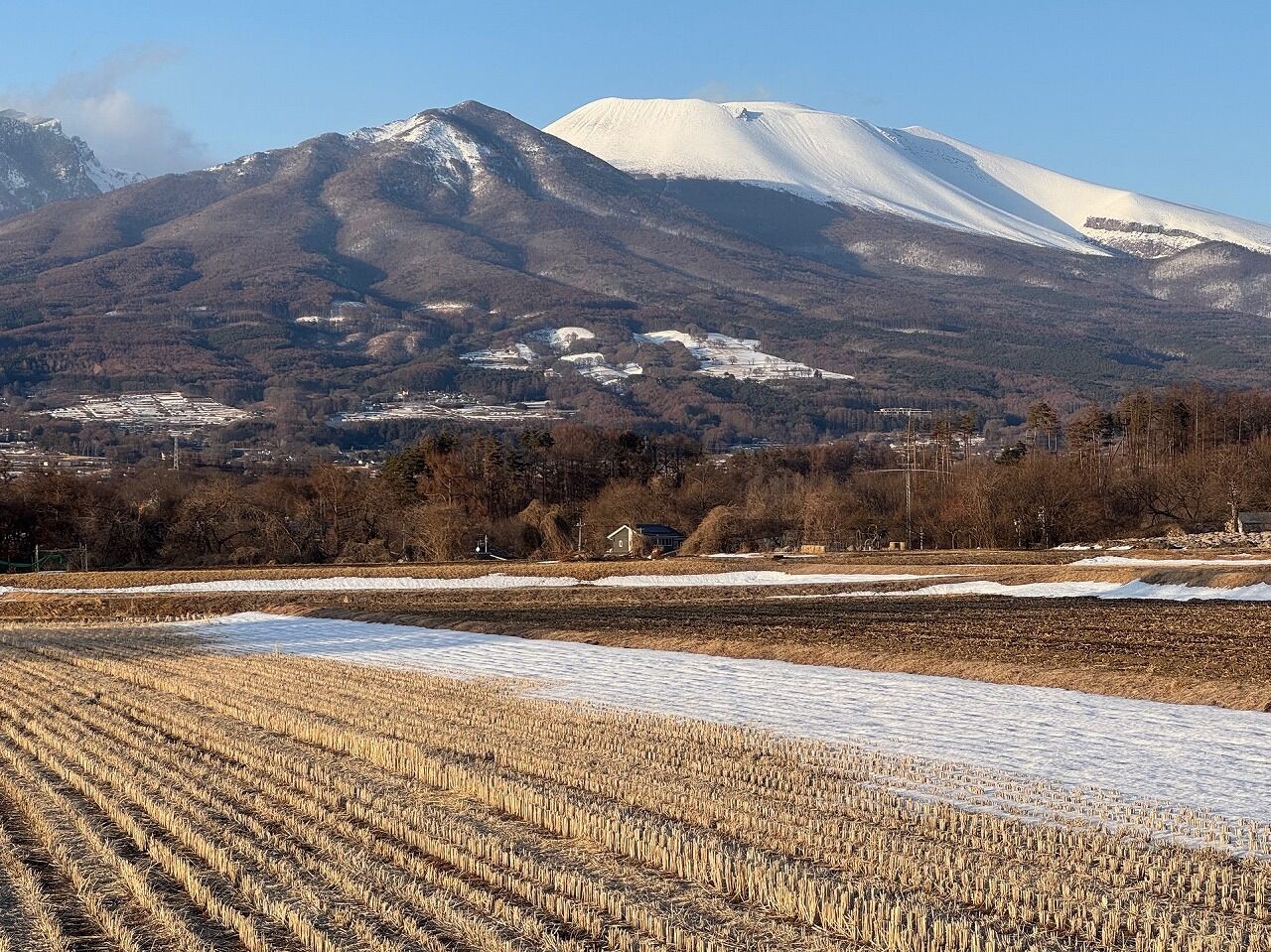 浅間山には白い雪がよく似合う。