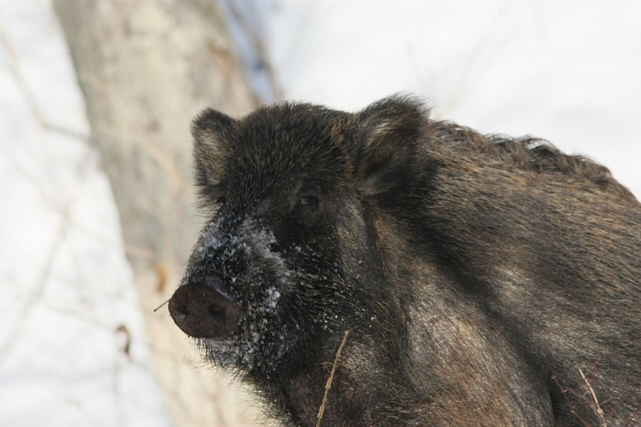 餌のない時期だったので、鼻で雪を掘ってましたが何も収穫はありません