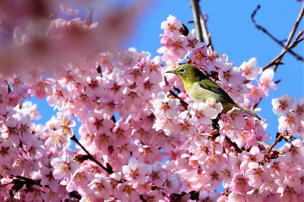 桜にメジロ