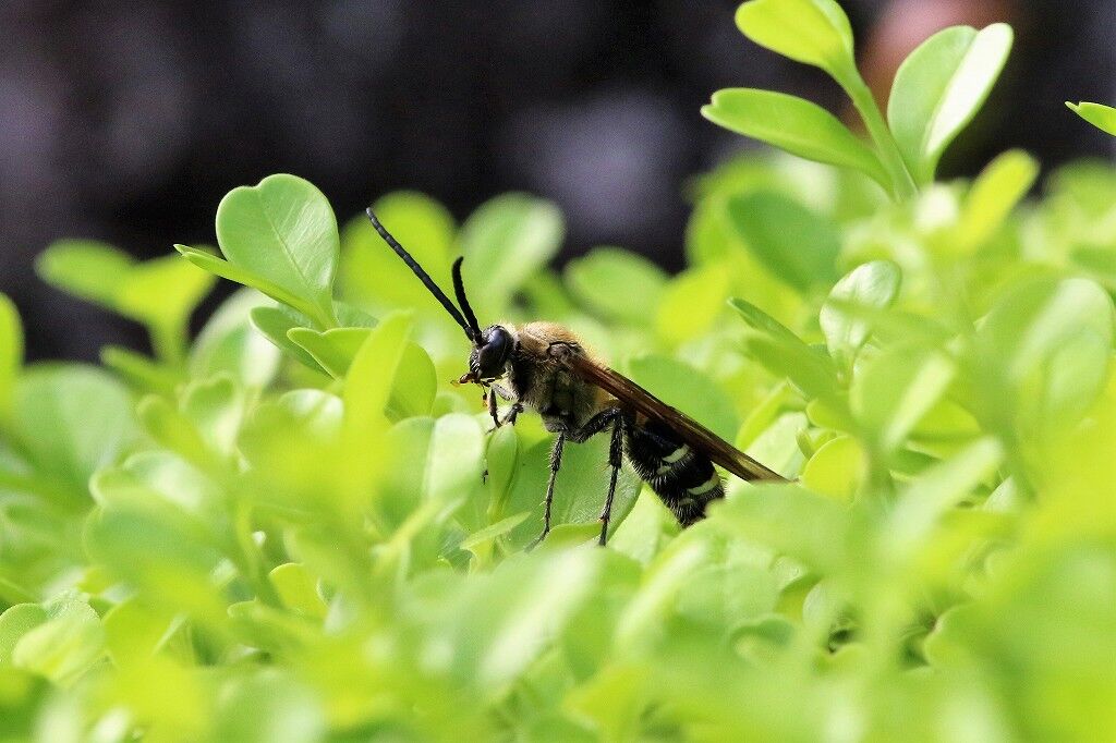 我家の庭に大発生している「キンケハラナガツチバチ(金毛腹長土蜂)」