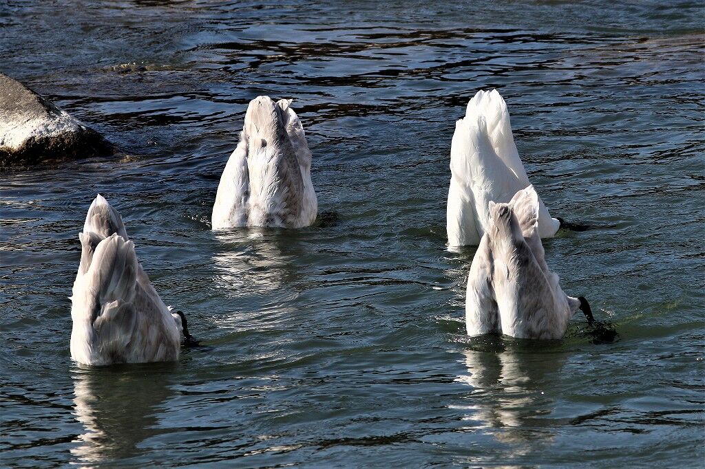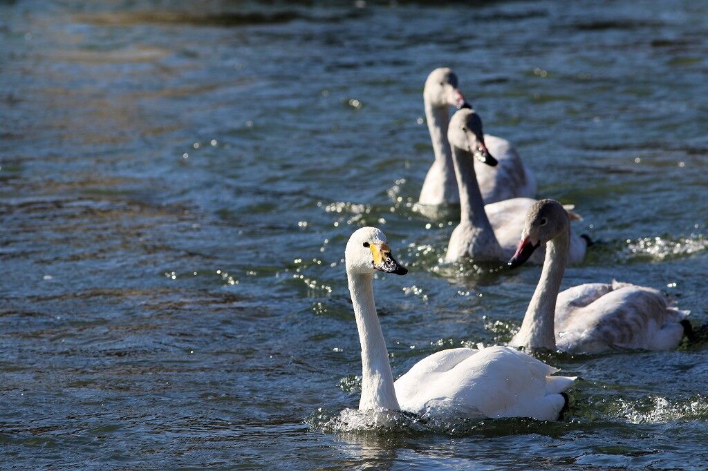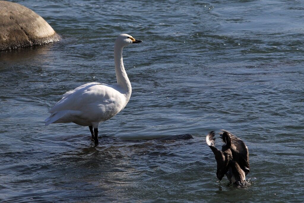 調整池から居なくなったコハクチョウは20kmほど下流の千曲川にいた