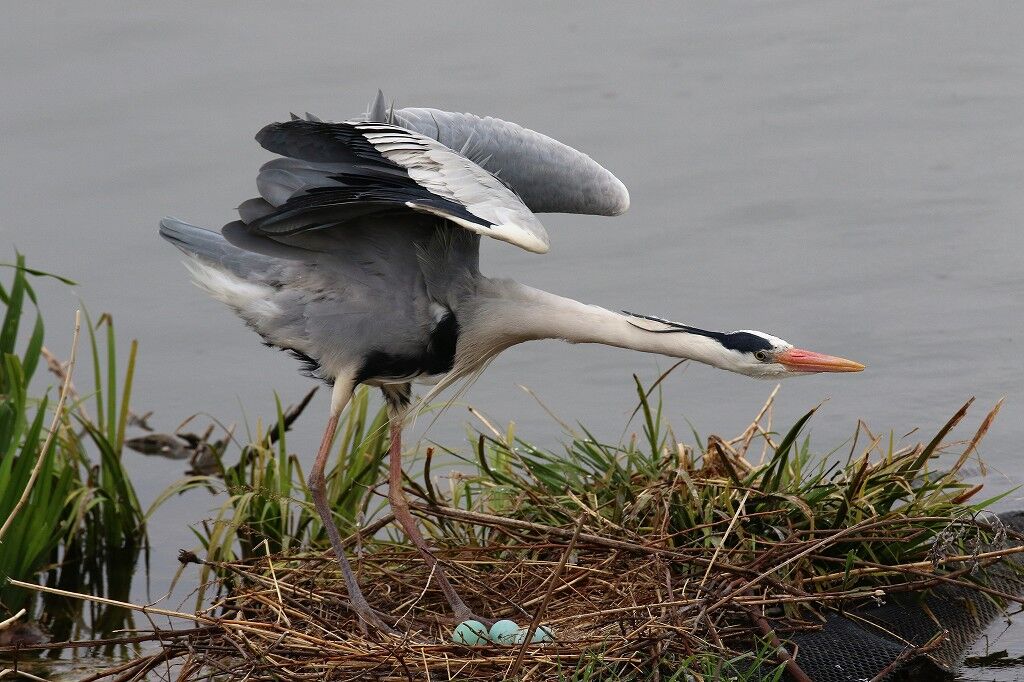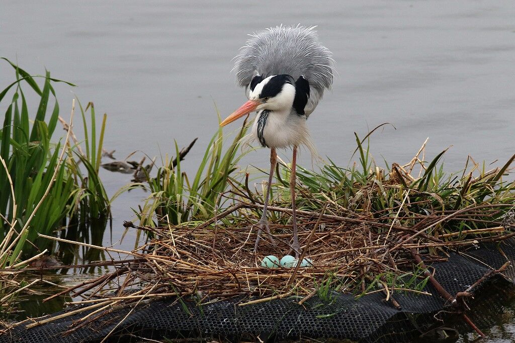 一番最後に営巣を始め、巣ができないうちに卵を産んだアオサギは