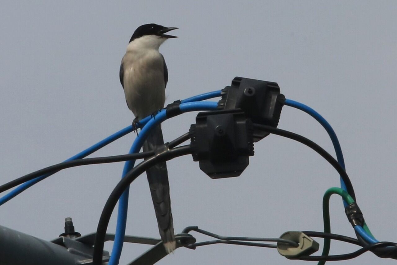 そのうちの一羽は電線に止まった